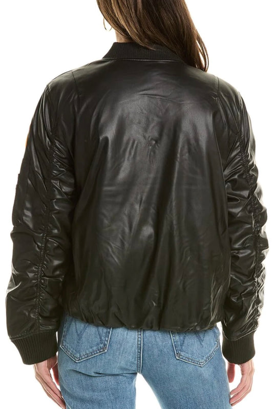 Black Faux Lthr Patch Bomber