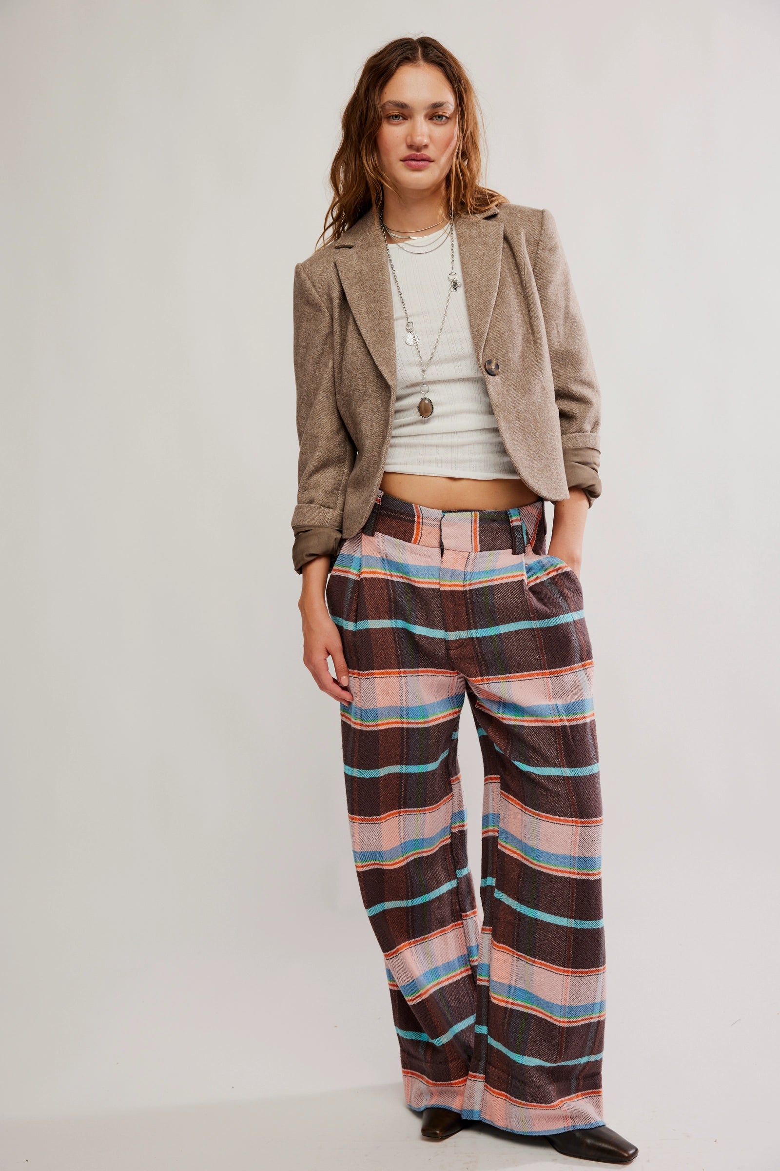 Buckle Back Plaid Trouser