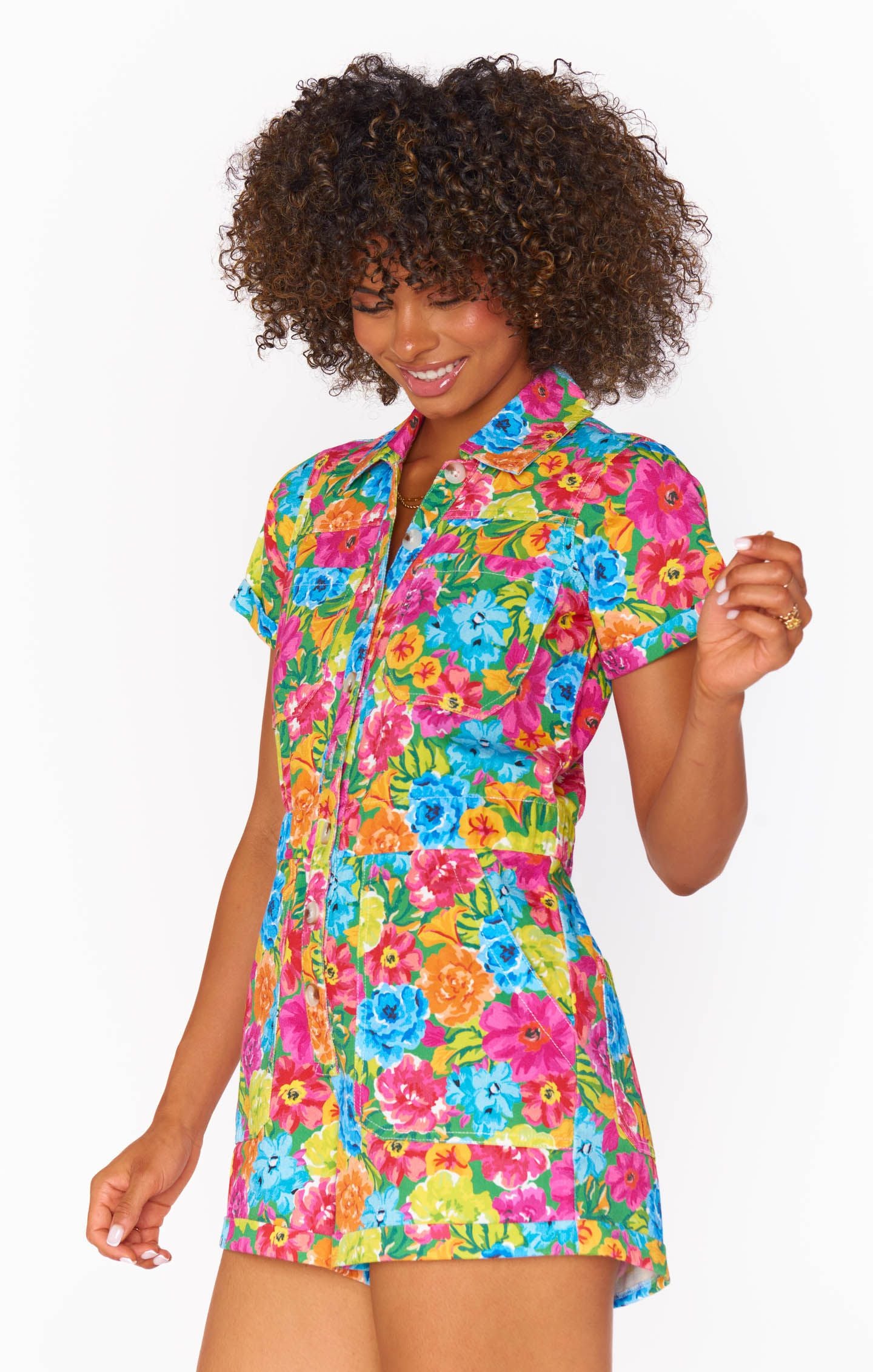 The Cannon is a denim romper that is effortlessly chic and easy to throw on! The button up front lets you control how much skin you show and a flattering elastic waist keeps it a little more fitted while still being comfortable.