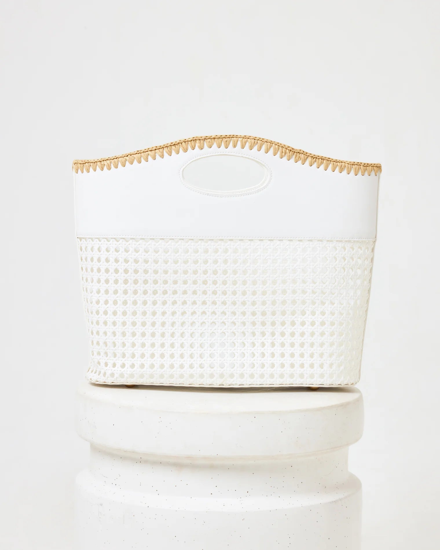 he Casablanca is our super-special take on an oversized clutch. Thoughtful details including a paper raffia woven stitch on top and a cream colored open-weave body makes this purse perfect for elevating your everyday outfit.