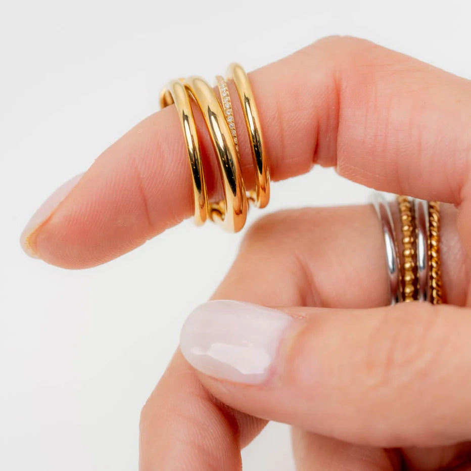 Expertly crafted with a trendy stacked spinning design, the Everly Stacked Ring adds a touch of elegance to your everyday ring look. Made with a water-resistant band and accented with a diamond cz band, this ring is both stylish and versatile. Wear it with confidence and style.
