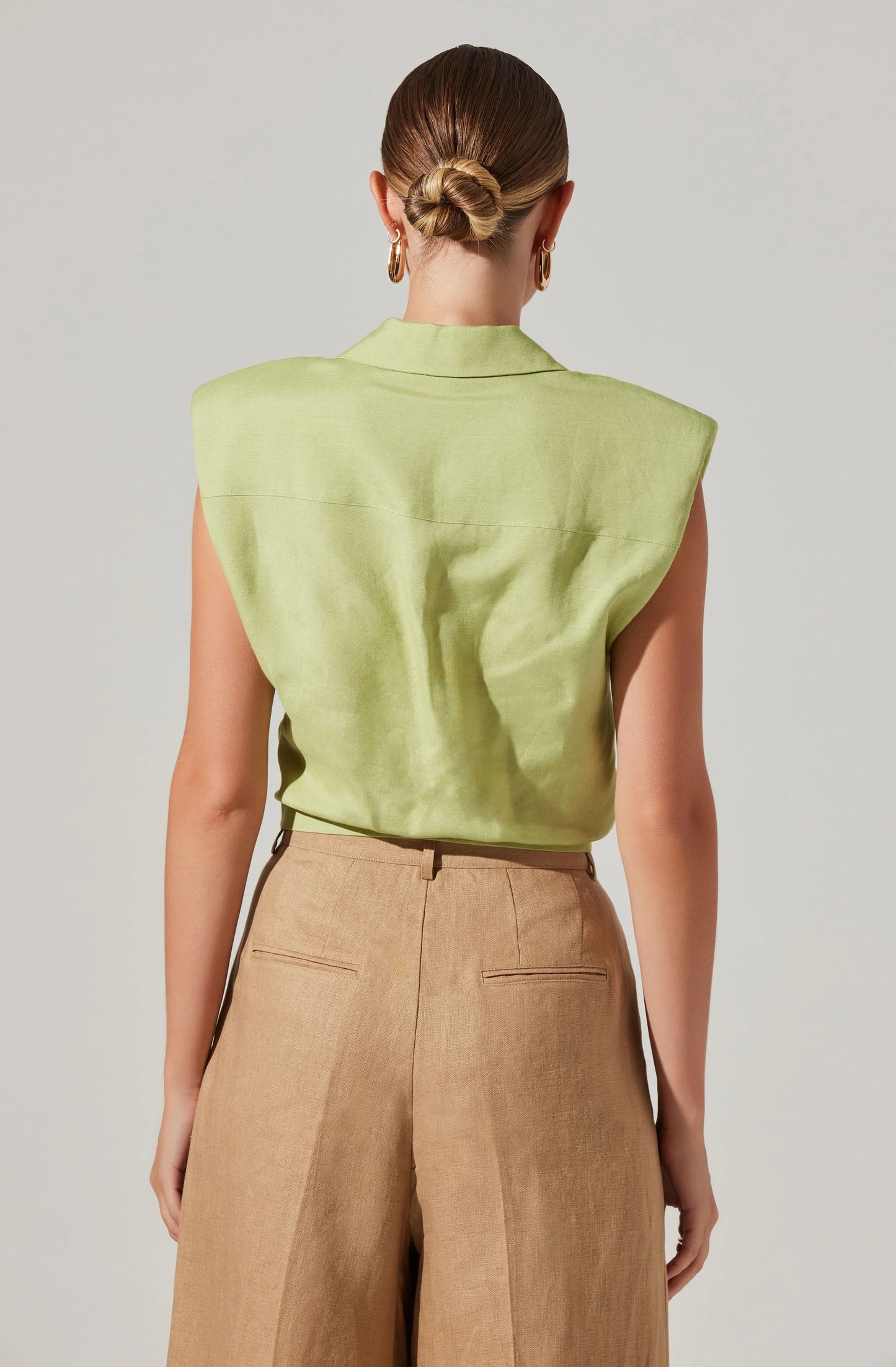 - Front twist collared sleeveless shirt