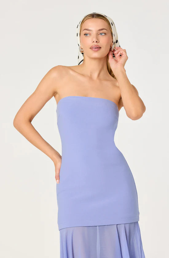 This strapless contrast maxi dress blends a clean, fitted top with a breezy sheer skirt for an effortless statement. A standout choice for vacations or nights out.