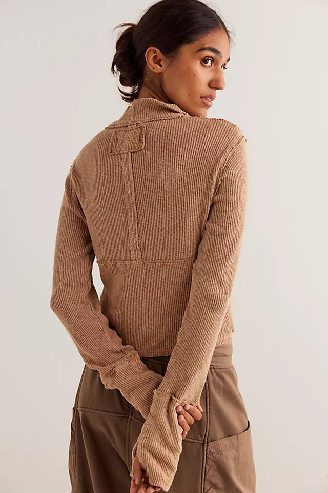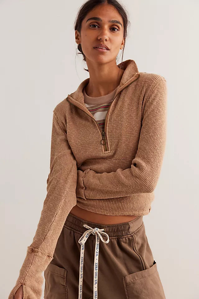 Made to layer, this long-sleeve from our We The Free collection features a ribbed knit fabrication and relaxed fit with a zipper closure and exaggerated cuffs.