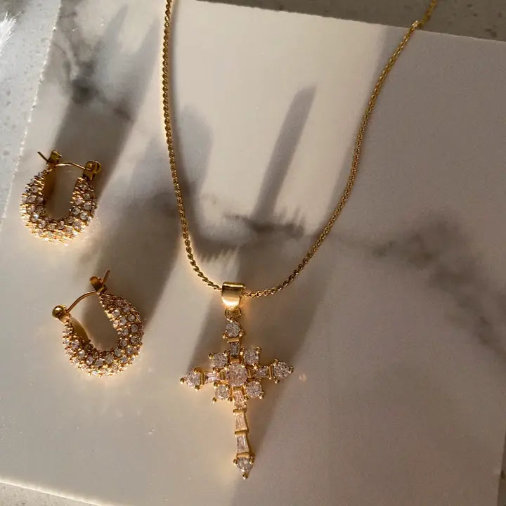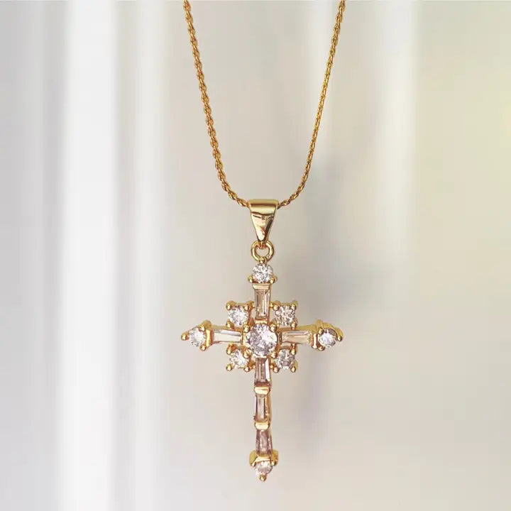 A glorious crystal cross pendant on a flat rope chain. This is one of my ALL TIME FAVORITE PIECES! It is made to be worn daily with a waterproof plating and stainless steel base.