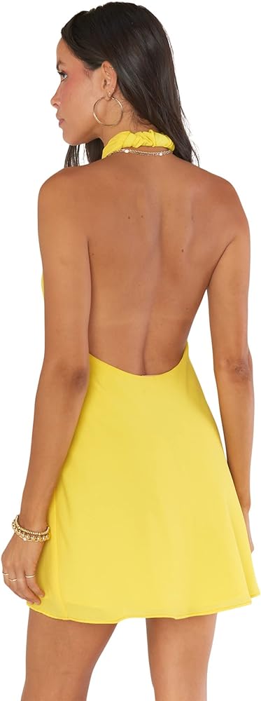 This bright yellow mini is cut on the bias to give that perfect slip draping we're all looking for. The top softly wraps around your neck for a flattering high neck and leaves a dramatic open back. A new go-to for special occasions and a vacay date night!
