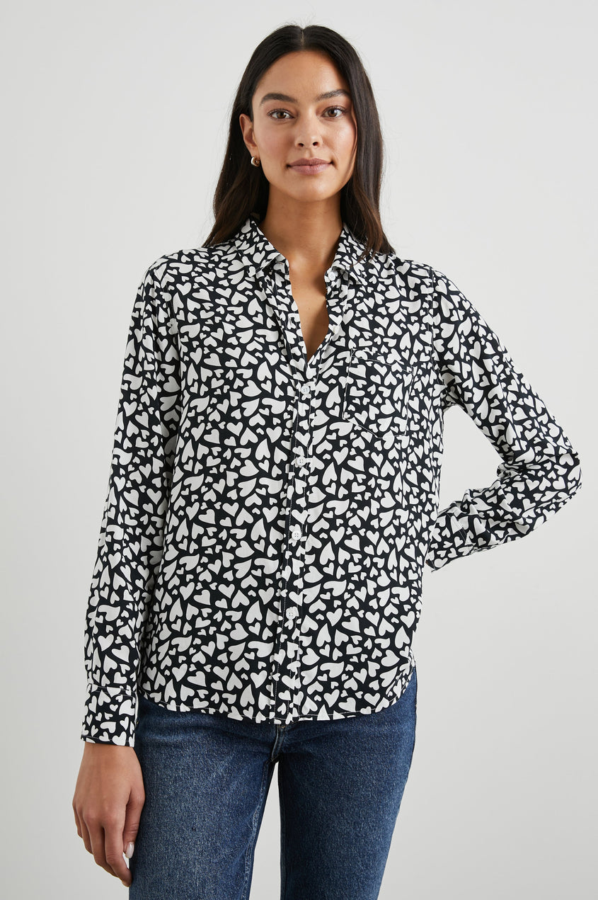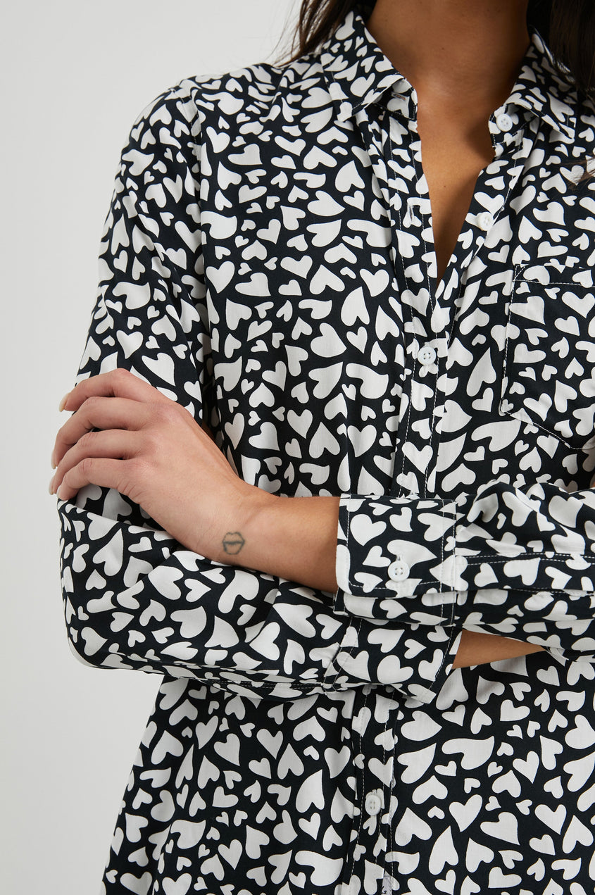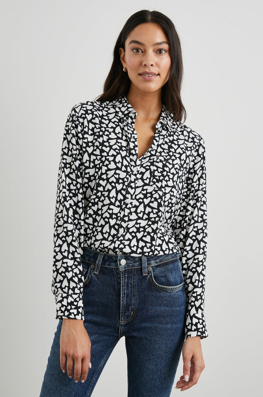 - Look refined and polished from work to weekend in this classic shirt made from elevated challis fabric. This collared button-down shirt features a classic fit and heart print.