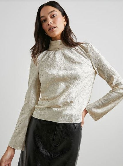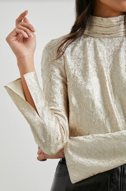 On crisp evenings, opt for this stunning shiny top cut from luxe crinkle satin. With a ruched turtleneck-style collar and full-length sleeves, the Soleil is both simple and sophisticated. Pair yours with denim, slacks, or a skirt!