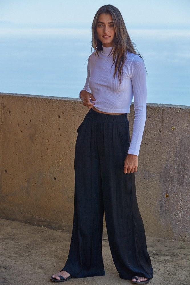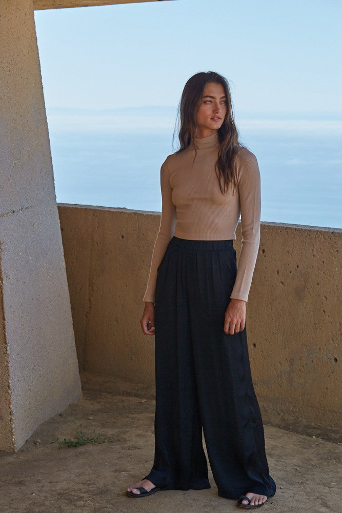 Knit Seamless Ribbed Long Sleeve Turtle Neck Top