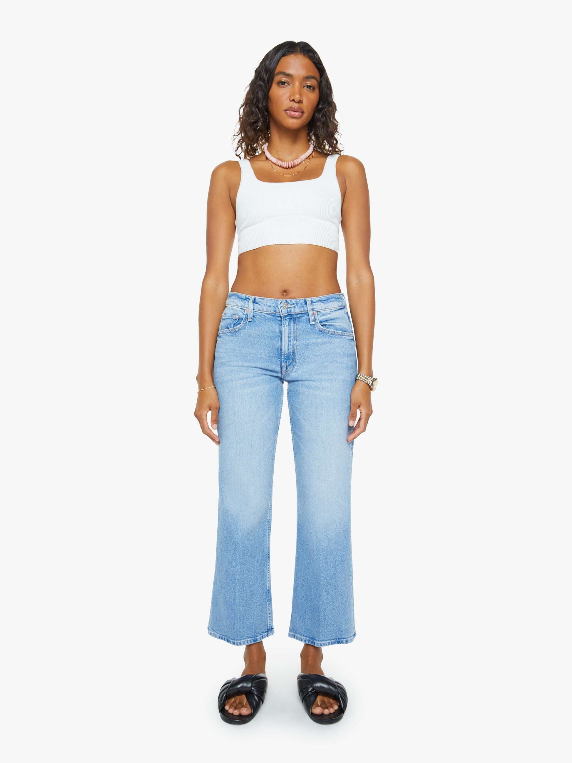 A high-rise bootcut with a looser leg and a 28.25-inch inseam with a clean hem. Made from semi-rigid SUPERIOR denim, Sow Surreal is a light blue with whiskering and fading throughout for a lived-in look.