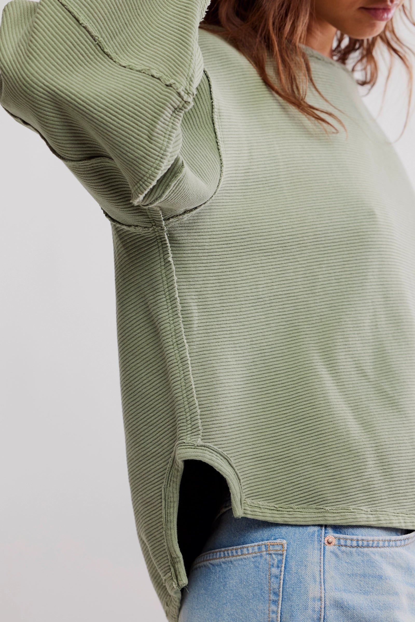 An elevated take on the classic tee, this long-sleeve from our We The Free collection features a ribbed fabrication and slouchy silhouette with defined seams and a scoop-neckline.